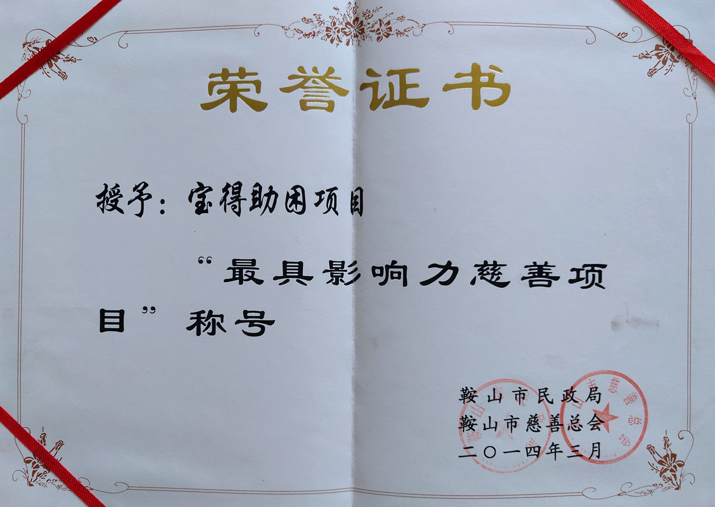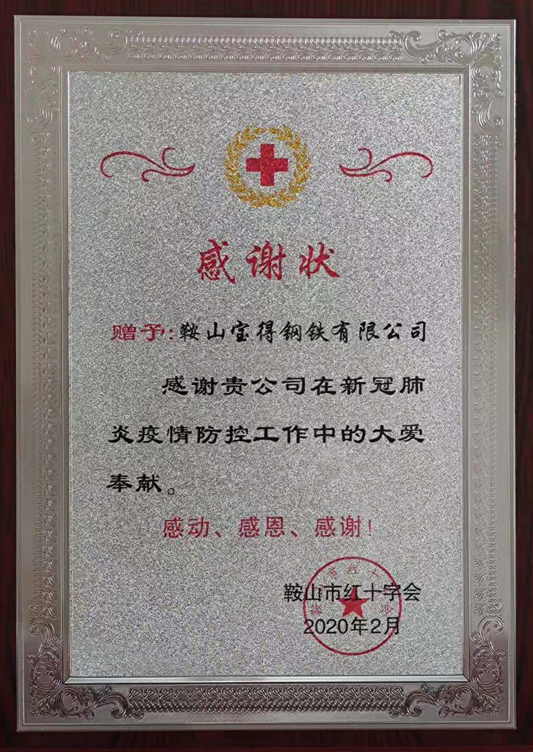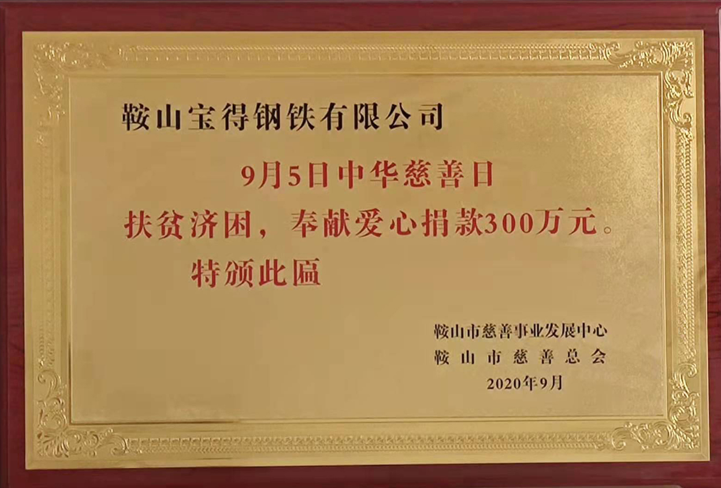 - 鞍山首個!寶得公司喜獲中國慈善最高獎2020-09-15