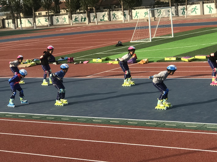 ![]() 學生在多功能塑膠操場上進行輪滑運動 |