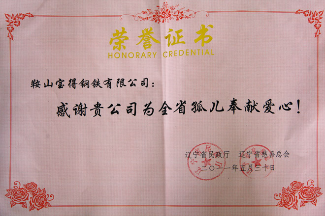 5月30日,公司向遼寧省孤兒學校捐款50萬元用于新校區(qū)建設。