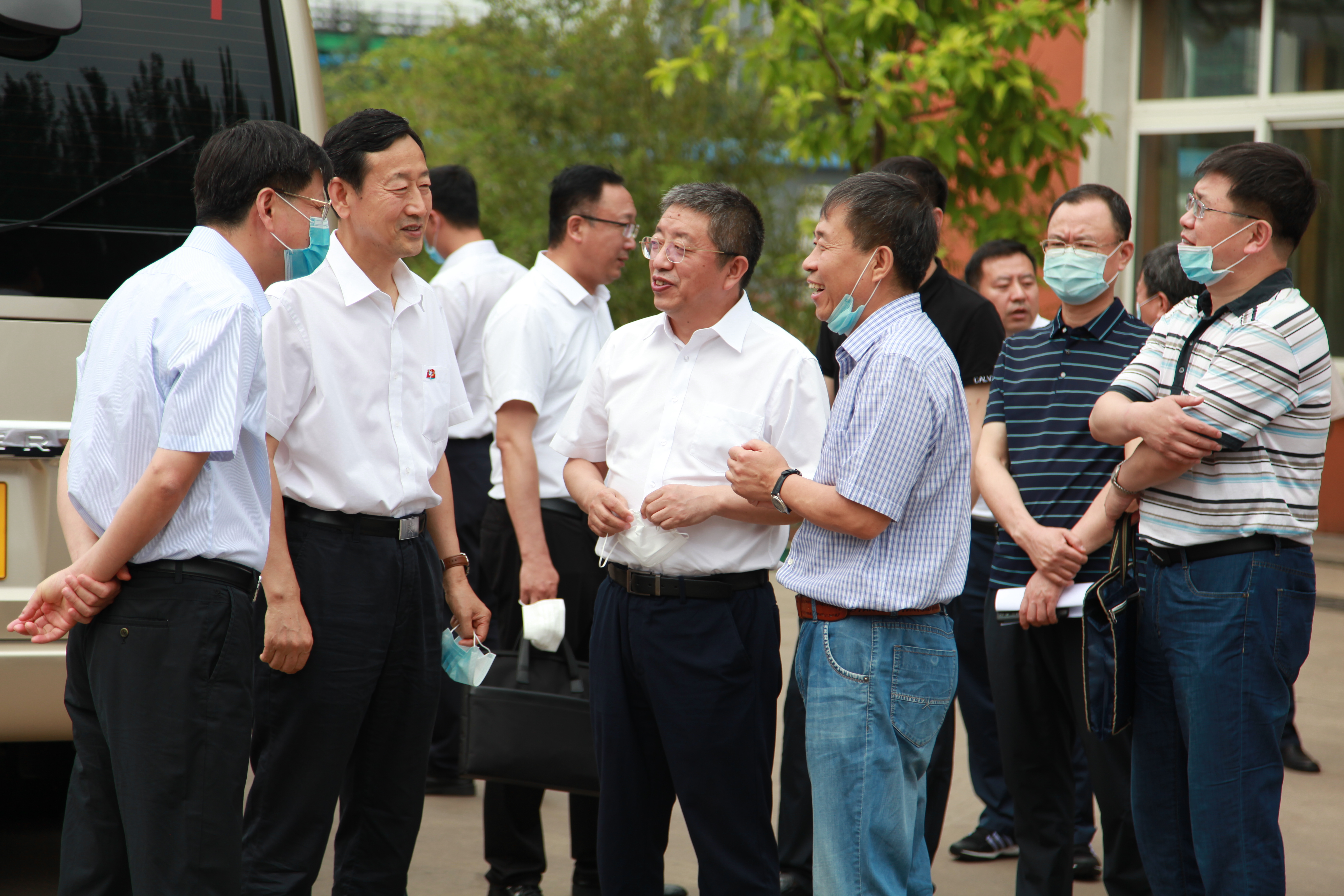 6月23日,遼寧省人大副主任張鐵民(左二)、鞍山市市長余功斌(左一)等領(lǐng)導到公司調(diào)研企業(yè)復工復產(chǎn)情況,公司總經(jīng)理張鐵漢陪同調(diào)研。